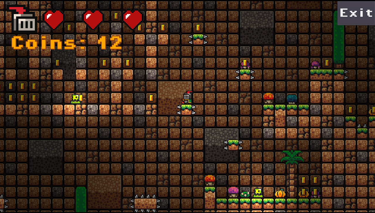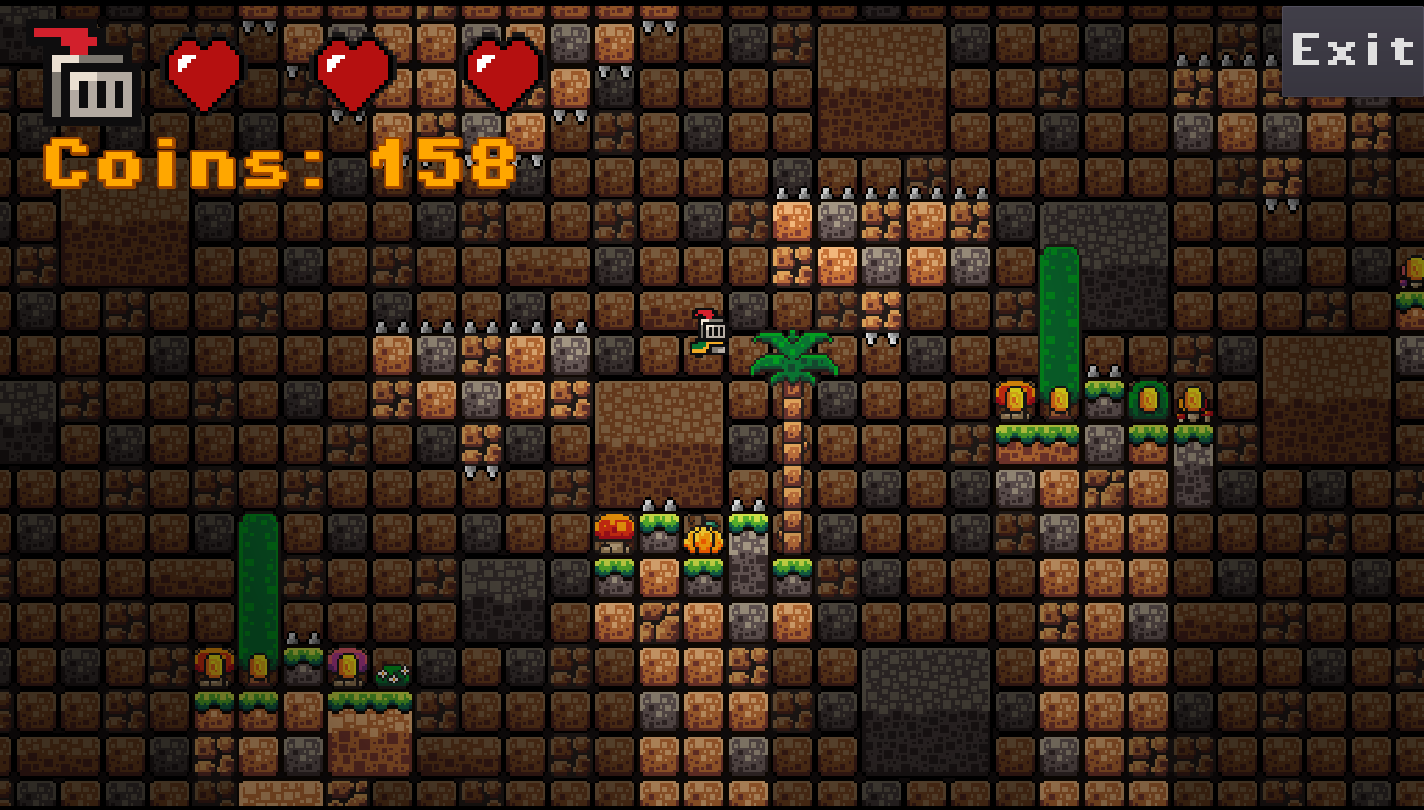 Traps, spikes, and enemies lurk in the shadows.